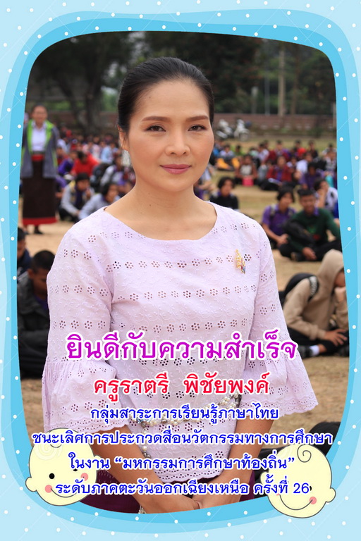 ขอแสดงความยินดีกับ ครูราตรี พิชัยพงค์ ที่ได้รับรางวัลชนะเลิศการประกวดสื่อนวัตกรรมทางการศึกษา กลุ่มสาระการเรียนรู้ภาษาไทย ในงาน “มหกรรมการศึกษาท้องถิ่น” ระดับภาคตะวันออกเฉียงเหนือ ครั้งที่ 26 ณ เทศบาลเมืองนางรอง อำเภอนางรอง จังหวัดบุรีรัมย์ และได้เป็นตัวแทนของภาคฯ เข้าประกวดในระดับประเทศที่จังหวัดภูเก็ต ซึ่งจะจัดขึ้นระหว่างวันที่ 9-11 เดือนกันยายน พ.ศ. 2561