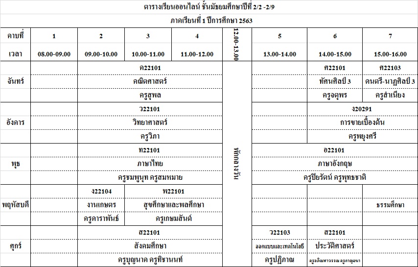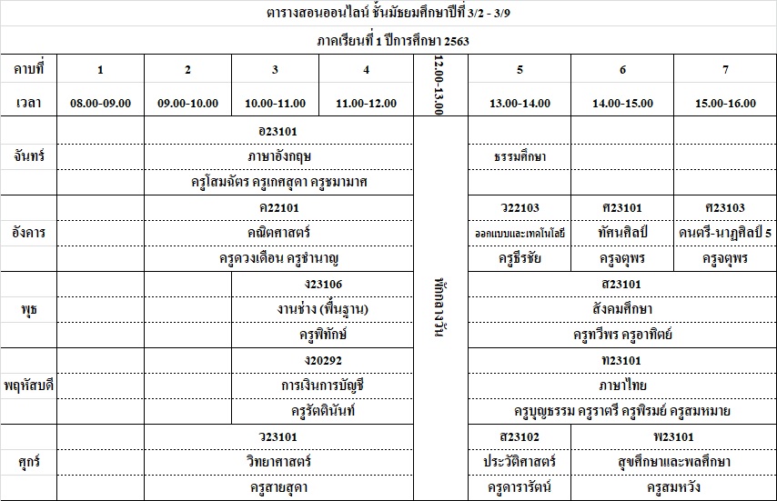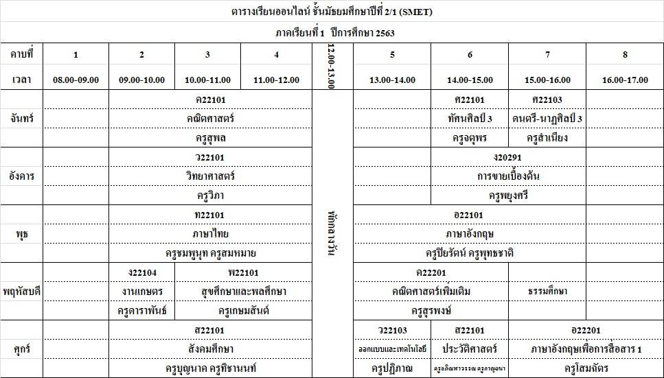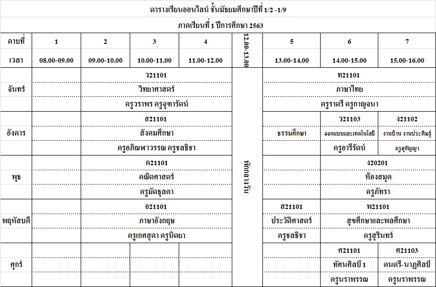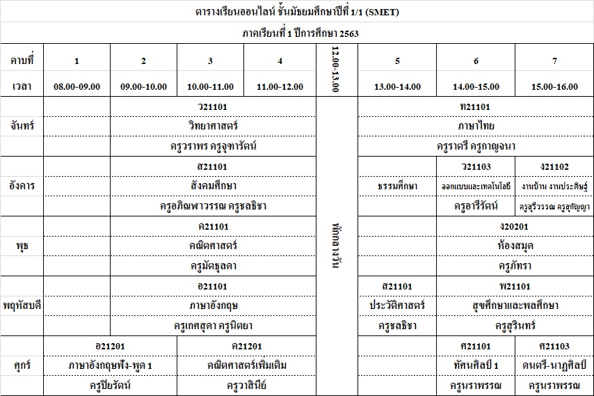 ตารางเรียนออนไลน์ ภาคเรียนที่ 1/2563 ม. ต้น