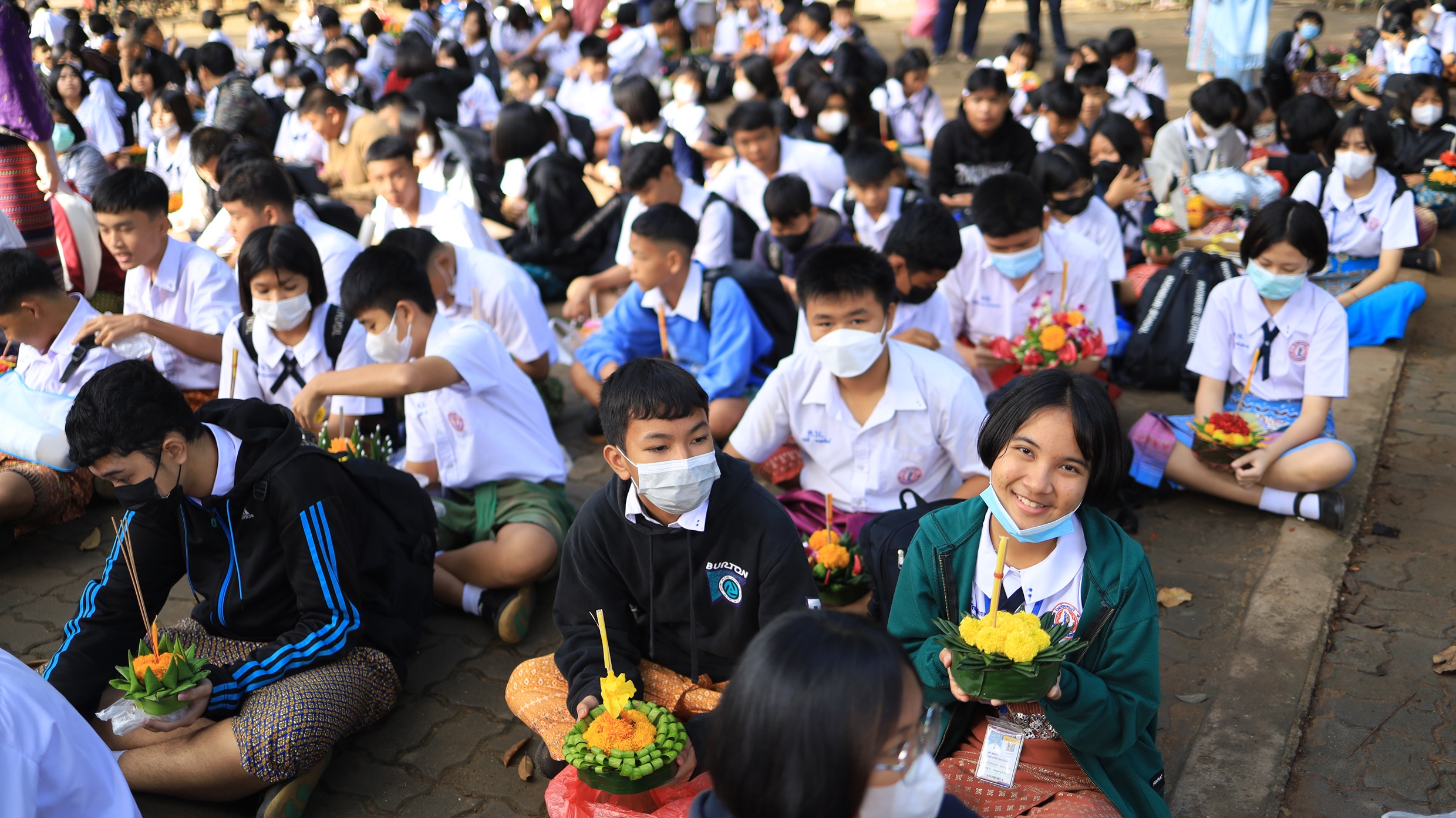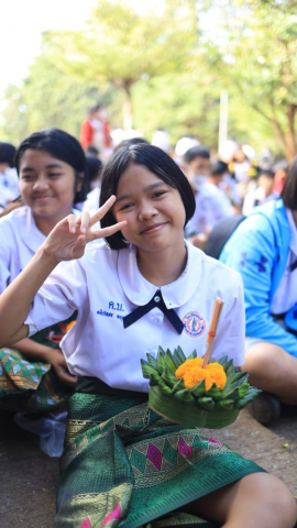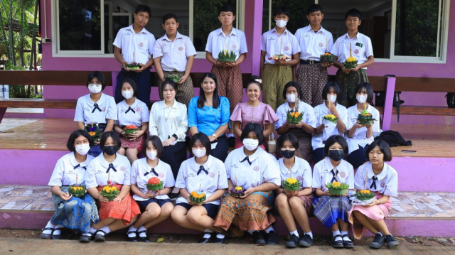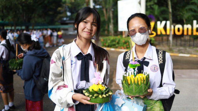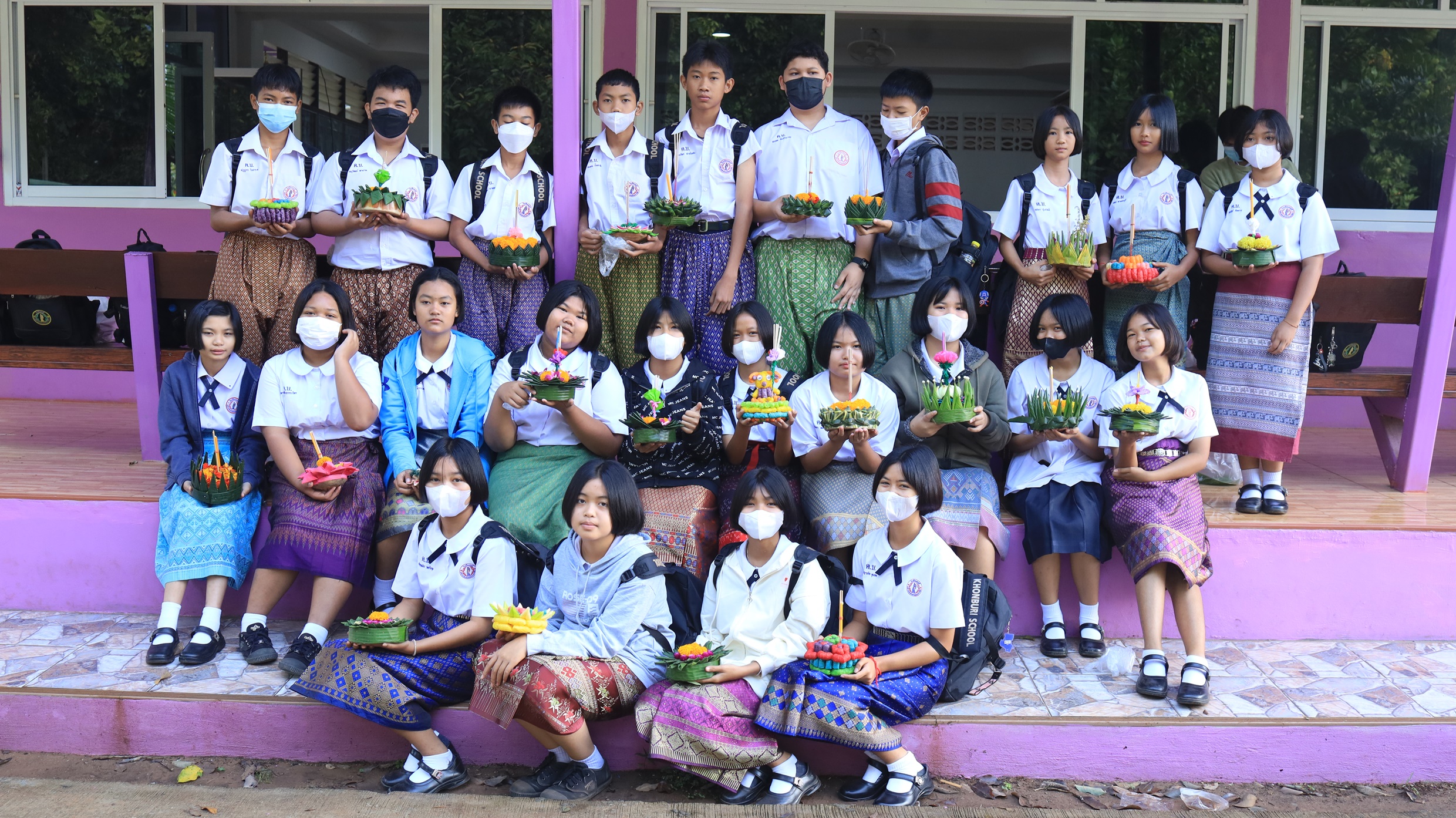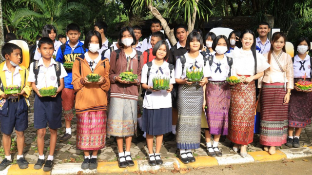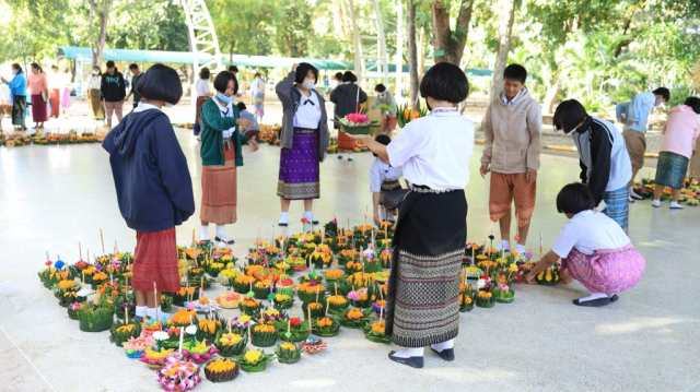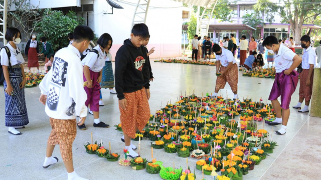 นักเรียนร่วมทำกระทงเพื่อบริจาคให้แก่วัดต่าง ๆ