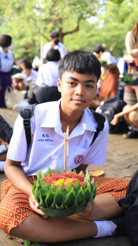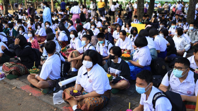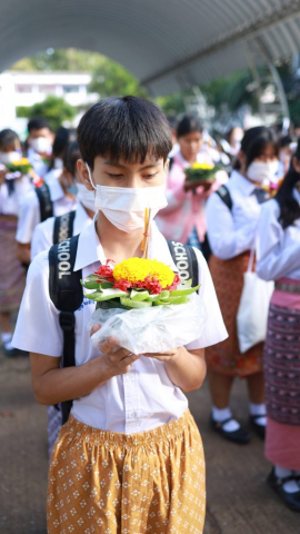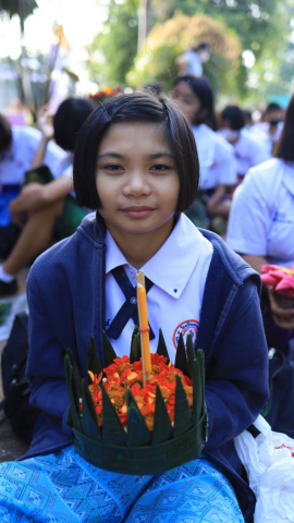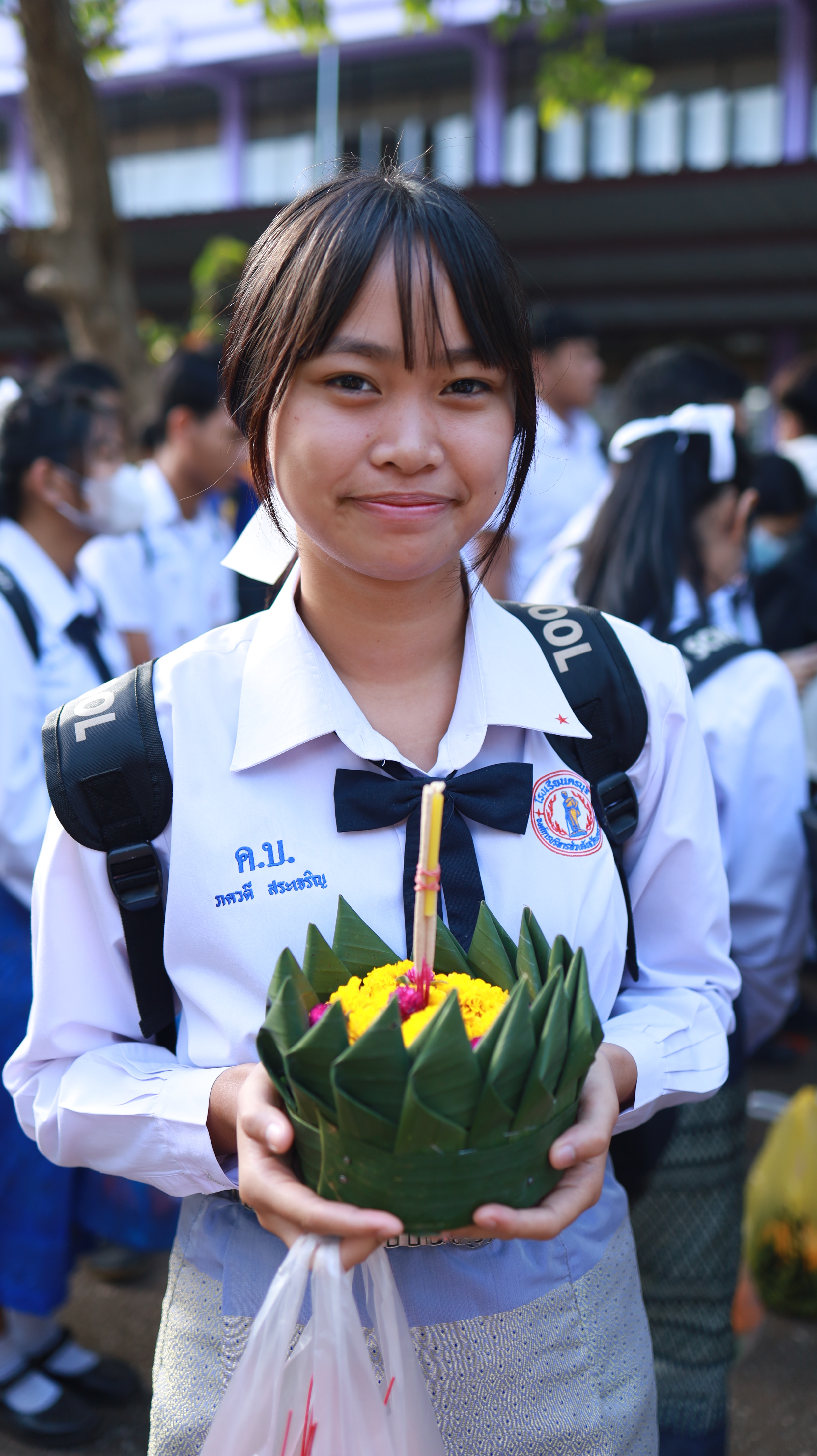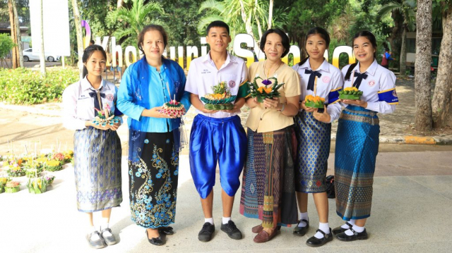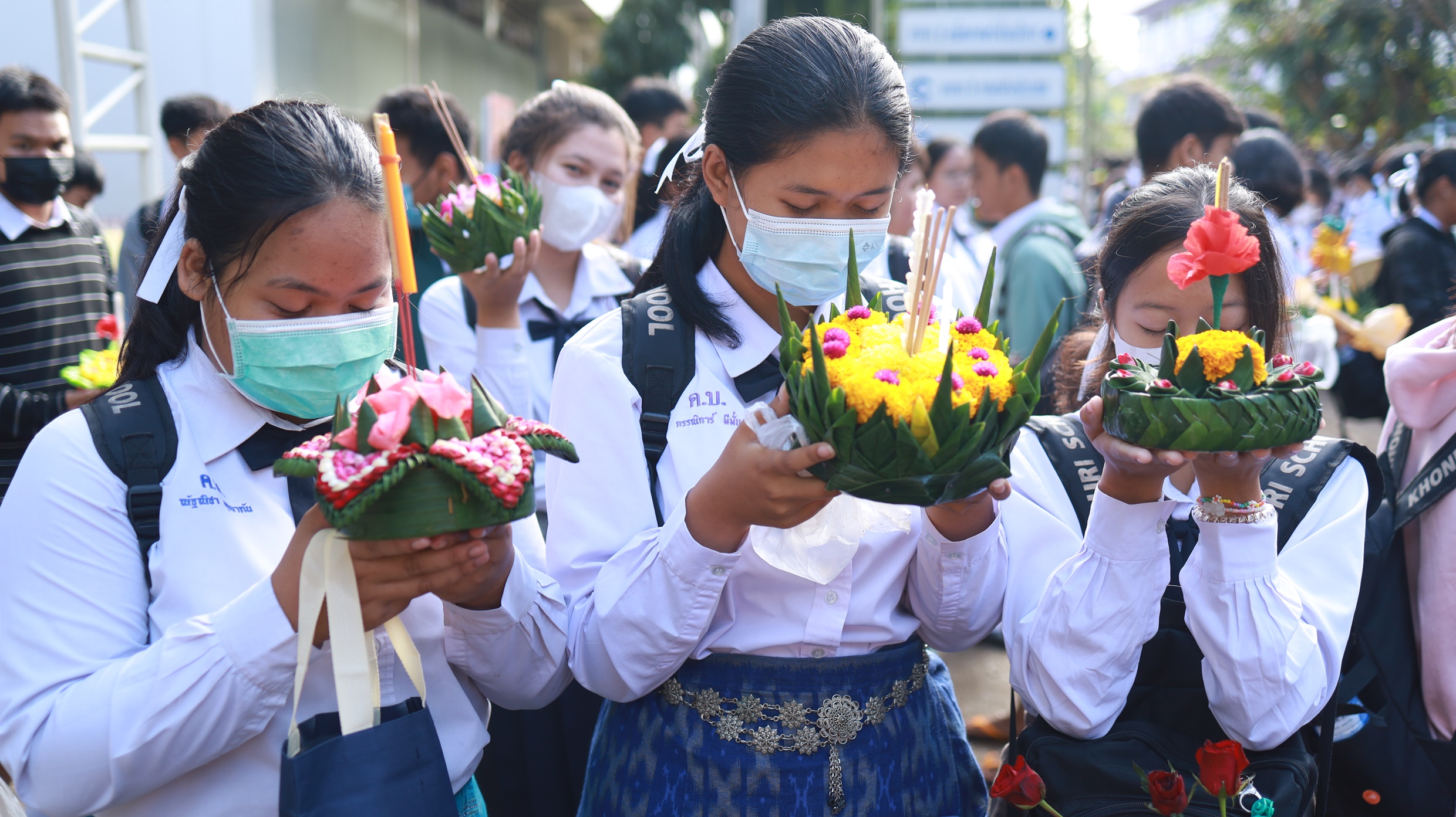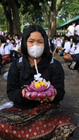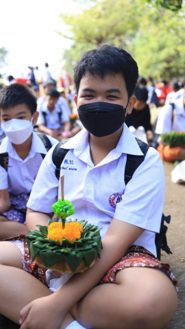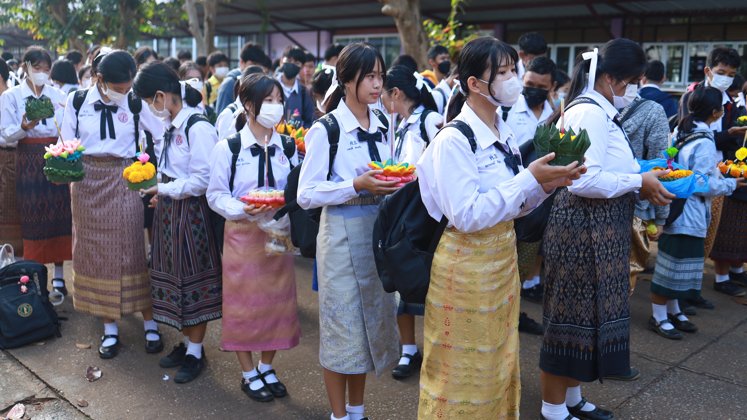 นักเรียนร่วมทำกระทงเพื่อบริจาคให้แก่วัดต่าง ๆ