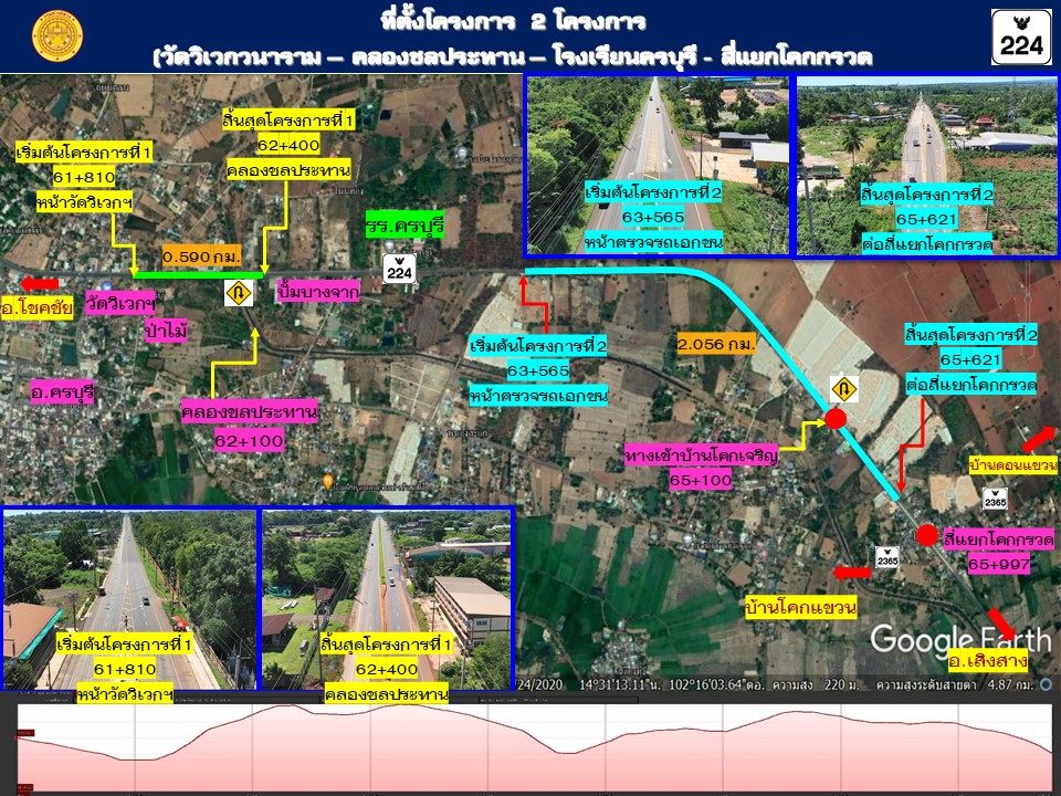 เมื่อวันที่ 9 เดือนสิงหาคม พ.ศ. 2565 ณ หอประชุมโรงเรียนครบุรี แขวงทางหลวงนครราชสีมาที่ 3 ได้ทำประชาพิจารณ์โครงการยกระดับมาตรฐานและเพิ่มประสิทธิภาพทางหลวงหมายเลข 224 ตอนพะโค–หนองสนวน ปีงบประมาณ 2566 ช่วง กม.61+810 – กม.62+400 (วัดวิเวกวนาราม-คลองชลประทาน) และ กม.63+565 – กม.65+621 (หน้าตรวจรถเอกชน-สี่แยกโคกกรวด) รวมระยะทางทั้ง 2 โครงการ 2.646 กม. ระยะเวลาทำการ 210 วัน งบประมาณทั้งหมด 85.8 ล้านบาท โดยมีนายพรชัย อำนวยทรัพย์ สมาชิกสภาผู้แทนราษฎร จังหวัดนครรราชสีมา นายชยุต พงศ์ธนทรัพย์ สมาชิกสภาองค์การบริหารส่วนจังหวัดนครราชสีมา ผู้นำท้องถิ่น ครูโรงเรียนครบุรี ตลอดจนประชาชนทั่วไปที่มีส่วนได้เสียเข้าร่วมและเห็นชอบโครงการ