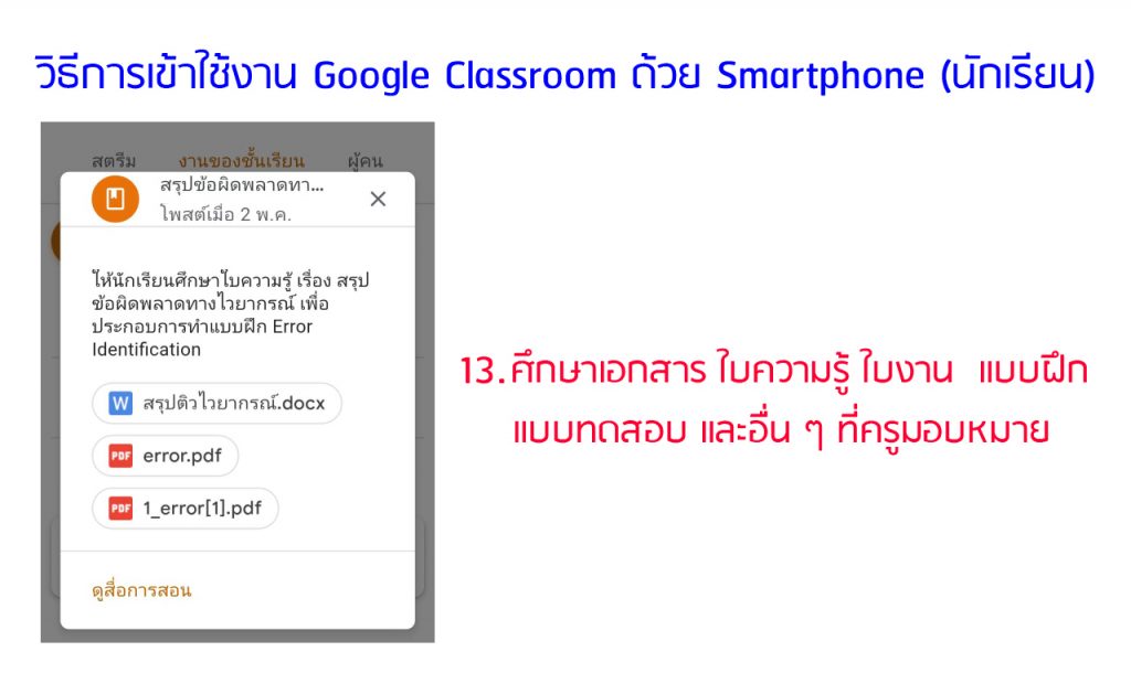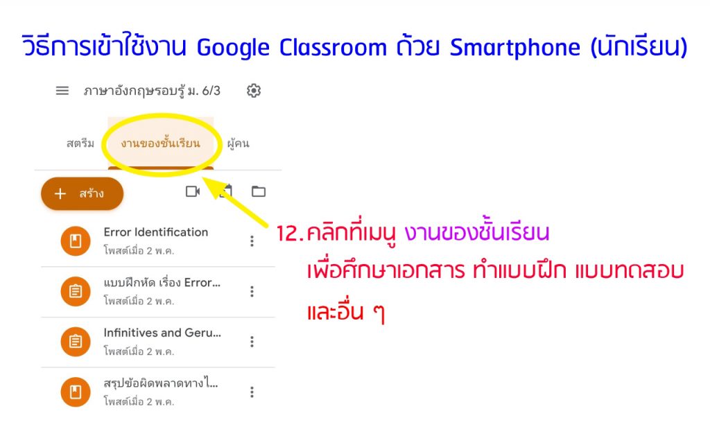 วิธีการเข้าใช้งานใน Google Classroom (ห้องสำหรับการเข้าศึกษาใบความรู้ ทำใบงาน และแบบฝึกหัด ฯลฯ) ด้วย Smartphone, Ipad หรือ Tablet