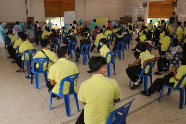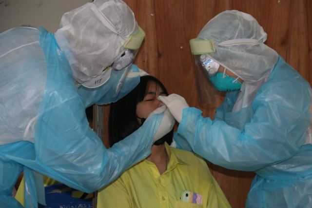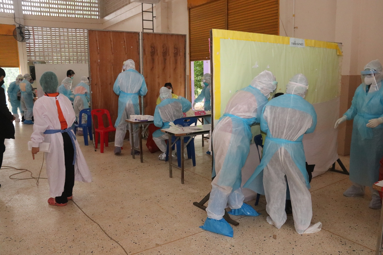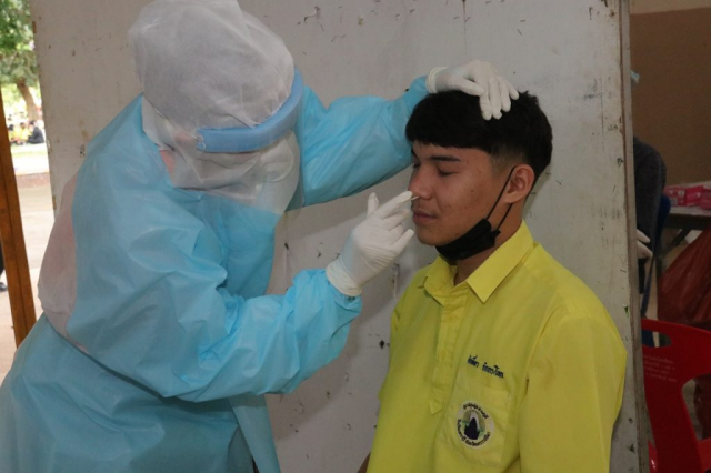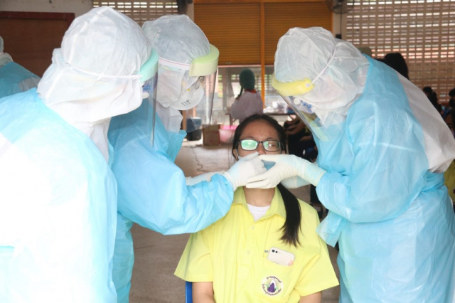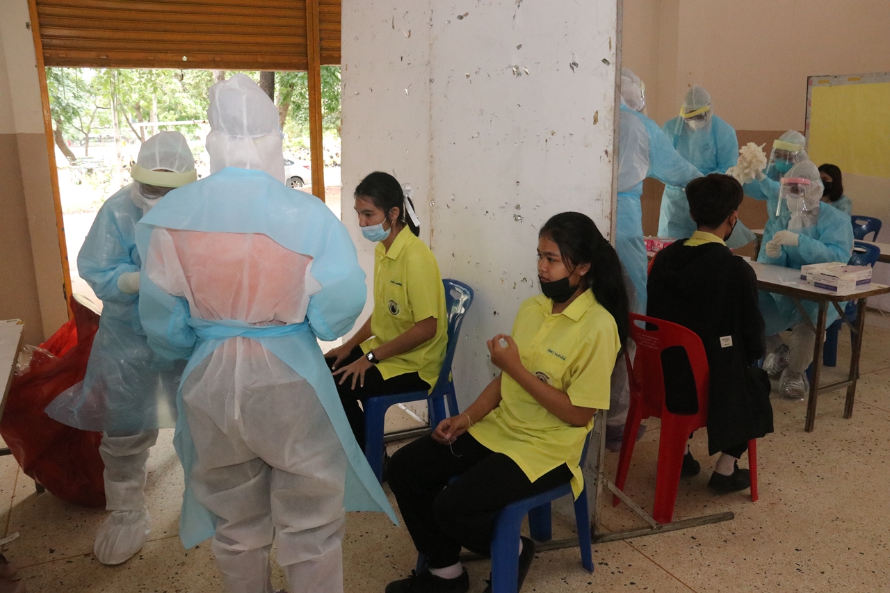 ตลอดช่วงเช้าของวันที่ 18 เดือนพฤศจิกายน พ.ศ. 2564 คณะเจ้าหน้าที่จากโรงพยาบาลครบุรีได้ออกคัดกรองและตรวจหาเชื้อโควิด-19 แบบเร่งด่วน (Antigen Test Kit) จากนักเรียนชั้นมัธยมศึกษาปีที่ 5 และนักเรียนชั้นมัธยมศึกษาปีที่ 6 จำนวน 387 คน โดยมีคณะครูโรงเรียนครบุรีจำนวนหนึ่งเป็นผู้ช่วย ผลการตรวจ ไม่มีนักเรียนติดเชื้อแม้แต่คนเดียว