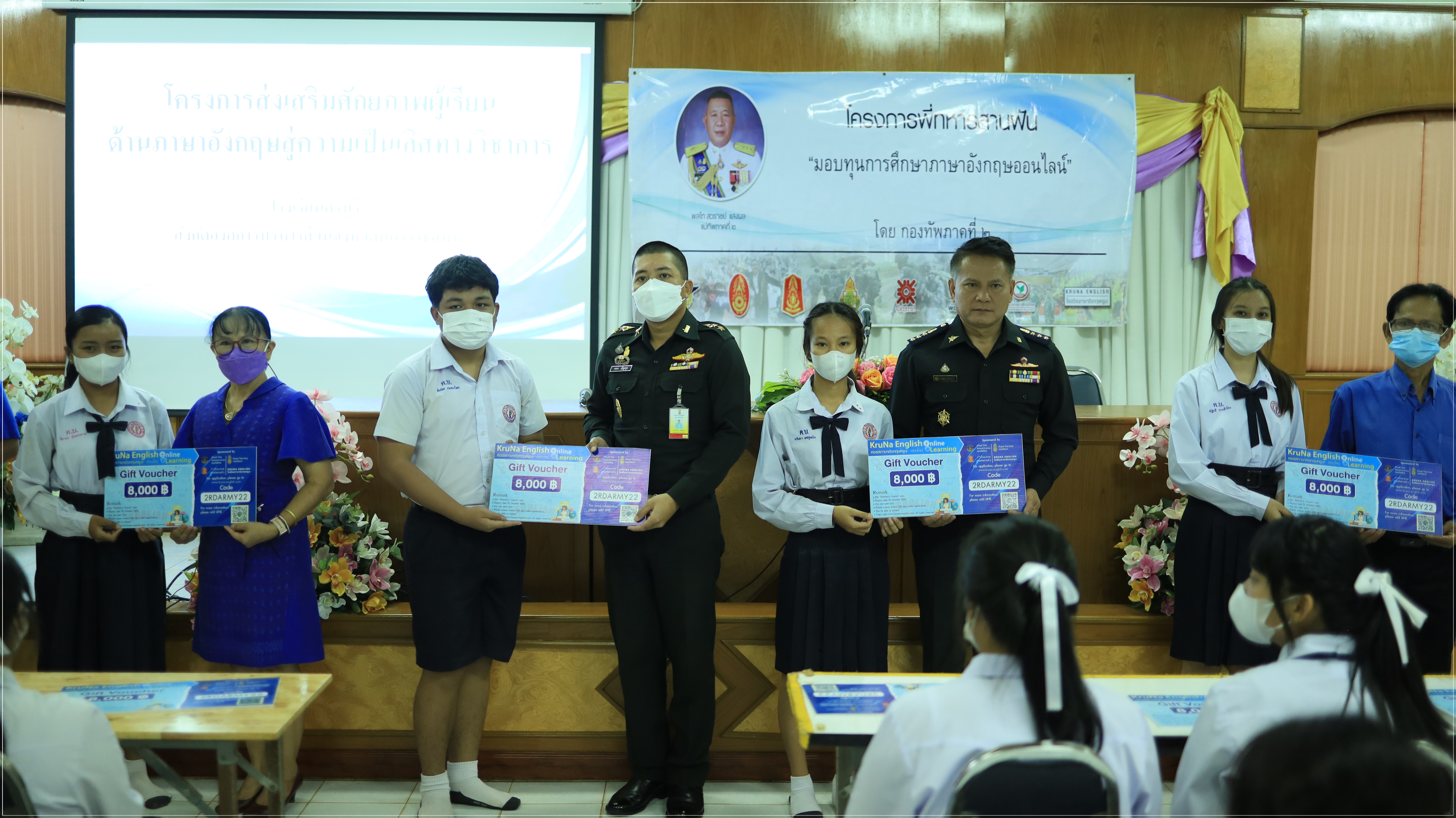 เมื่อวันที่ 31 เดือนพฤษภาคม พ.ศ. 2566 พันโทกชกร เบญจกุล ผู้บังคับกองพันทหารปืนใหญ่ที่ 3กรมทหารปืนใหญ่ที่ 3 และคณะ ได้เดินทางมามอบทุนการศึกษาภาษาอังกฤษออนไลน์แก่นักเรียนชั้นมัธยมศึกษาปีที่ 6 จำนวน 20 ทุน มูลค่าทุนละ 8,000 บาท ตามโครงการพี่ทหารสานฝัน โดยเป็นการสนับสนุนคอร์สเรียนวิชาภาษาอังกฤษออนไลน์กับครูนะ KruNa English ติวเตอร์ชื่อดังของจังหวัดนครราชสีมา เพื่อส่งเสริมศักยภาพด้านการศึกษาสู่ความเป็นเลิศทางวิชาการและสร้างโอกาสแก่นักเรียนในการศึกษาต่อในระดับอุดมศึกษา