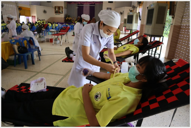 นักเรียนร่วมบริจาคโลหิต